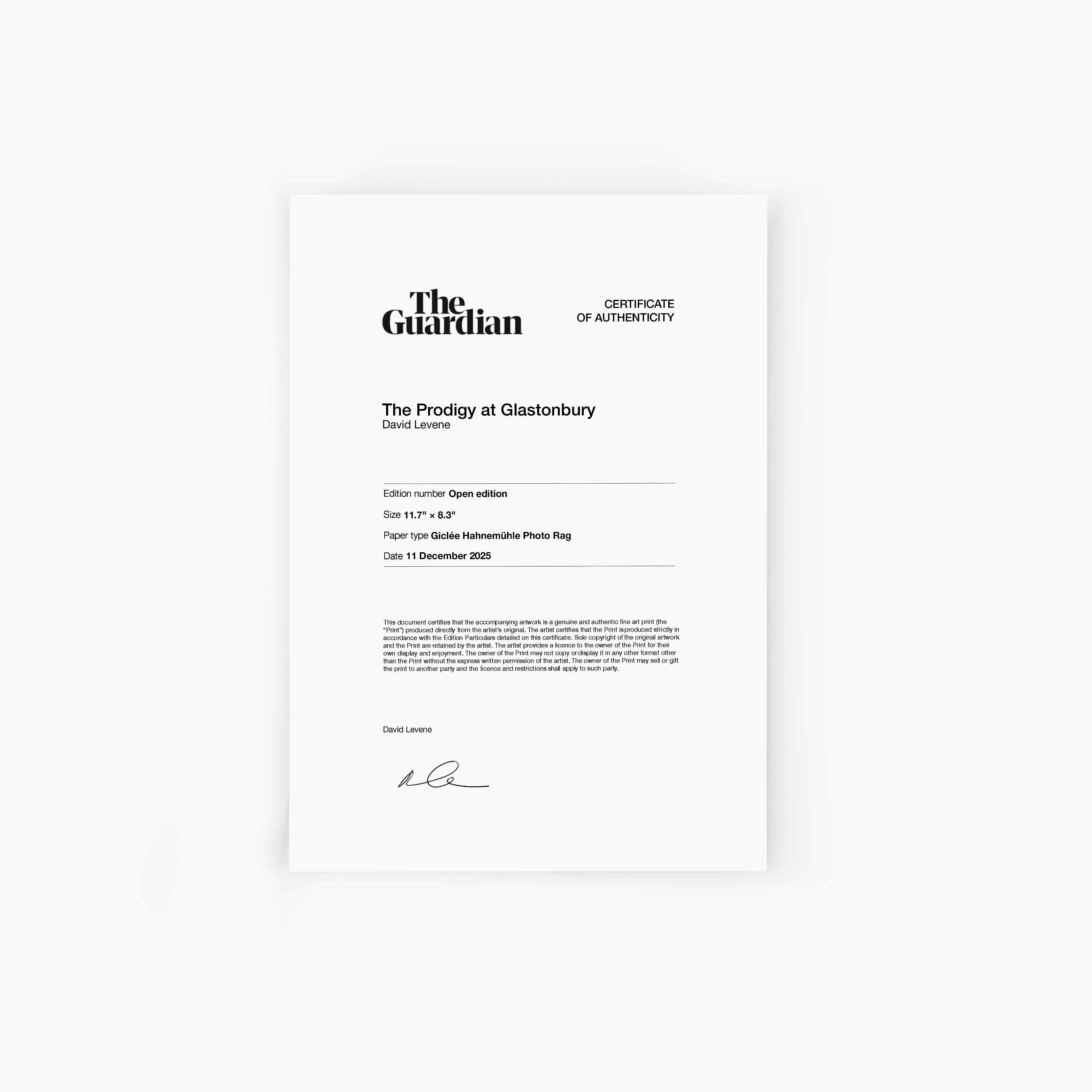 - Presented on acid-free, archival cotton PhotoRag Giclée paper from Hanhmeuhle