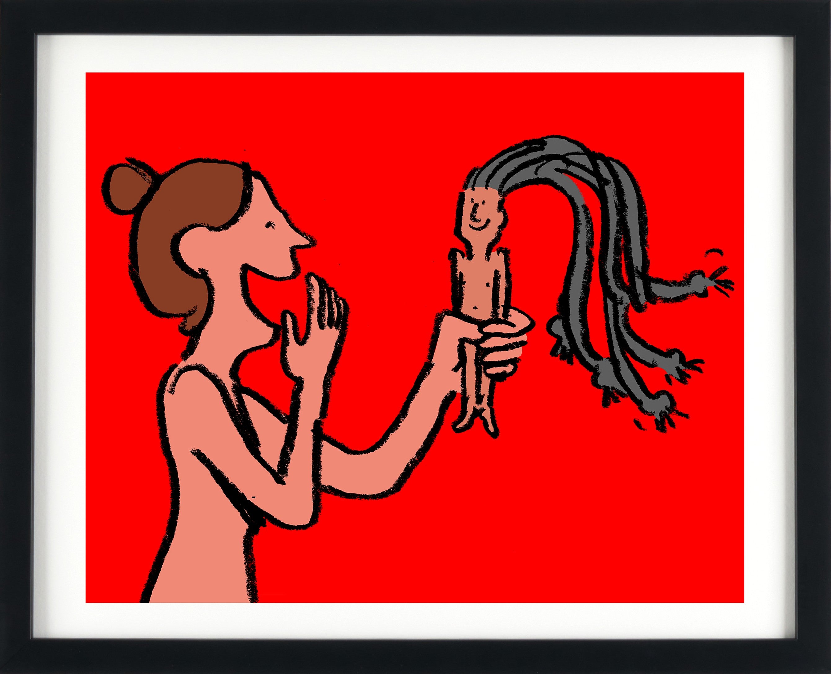 Probably my favourite from this series of illustrations. I explored a lot of strange ways of turning the couple into musical instruments, such as the guy playing her leg like an electric guitar, the two of them forming the kick of a bass drum, and even sketches of them with megaphone heads making out. I can practically hear the plastic clashing together now.